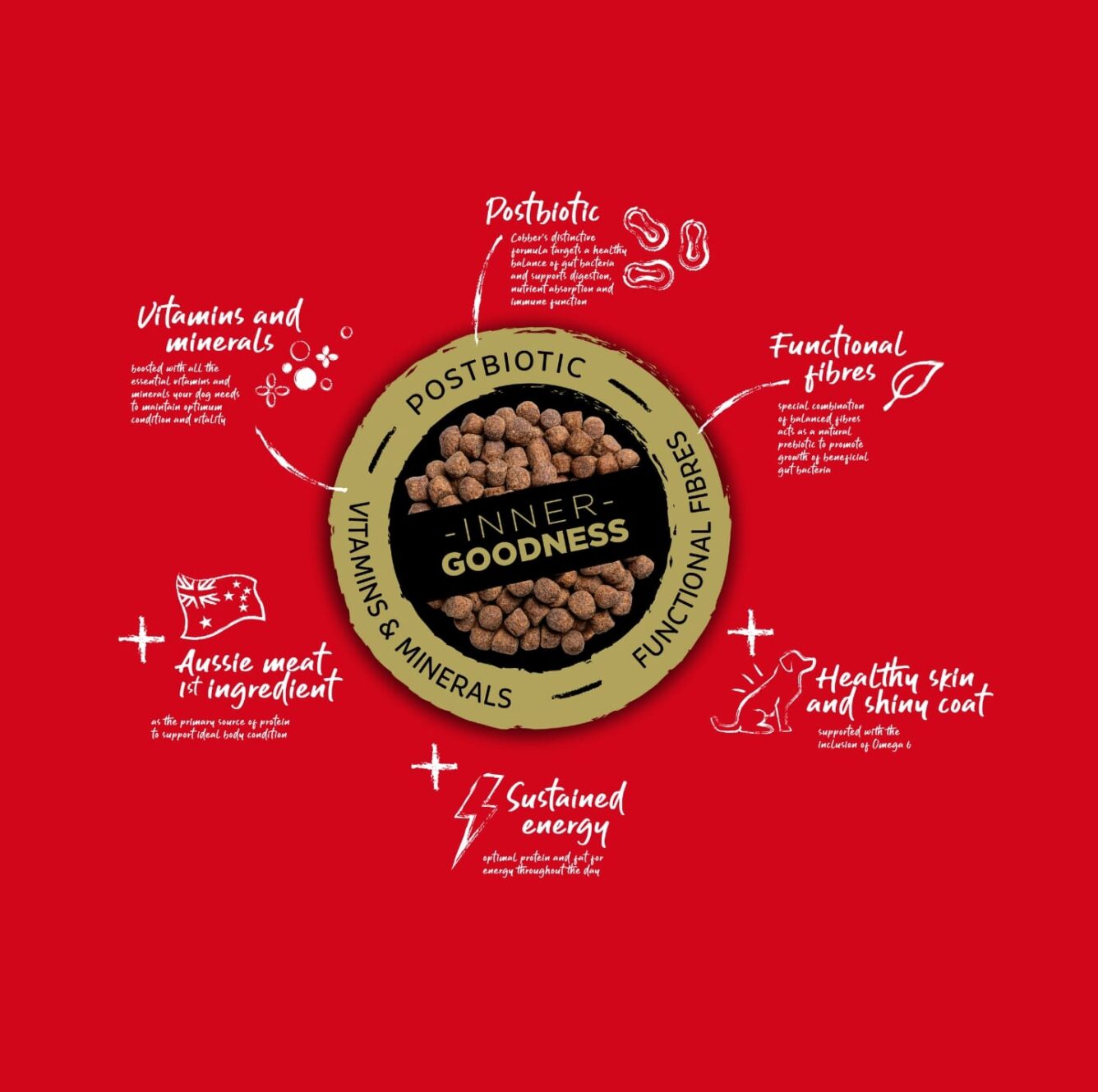 Formulated with Cobber’s Inner Goodness, a unique blend of vitamins, minerals, postbiotics, and functional fibres, this beef-flavoured kibble supports your dog’s overall health—keeping them happy on the outside and healthy on the inside.