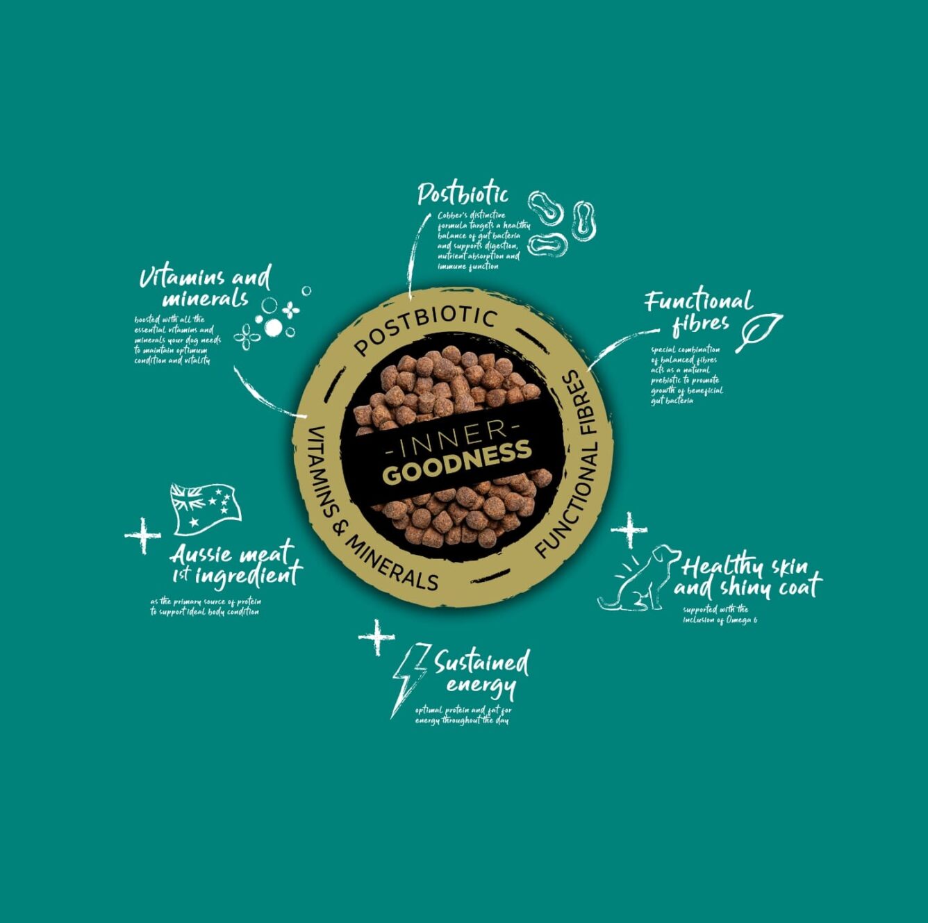 Formulated with Cobber’s Inner Goodness, a unique blend of vitamins, minerals, postbiotics, and functional fibres, this premium chicken-flavoured kibble supports overall health—keeping your dog happy on the outside and healthy on the inside.