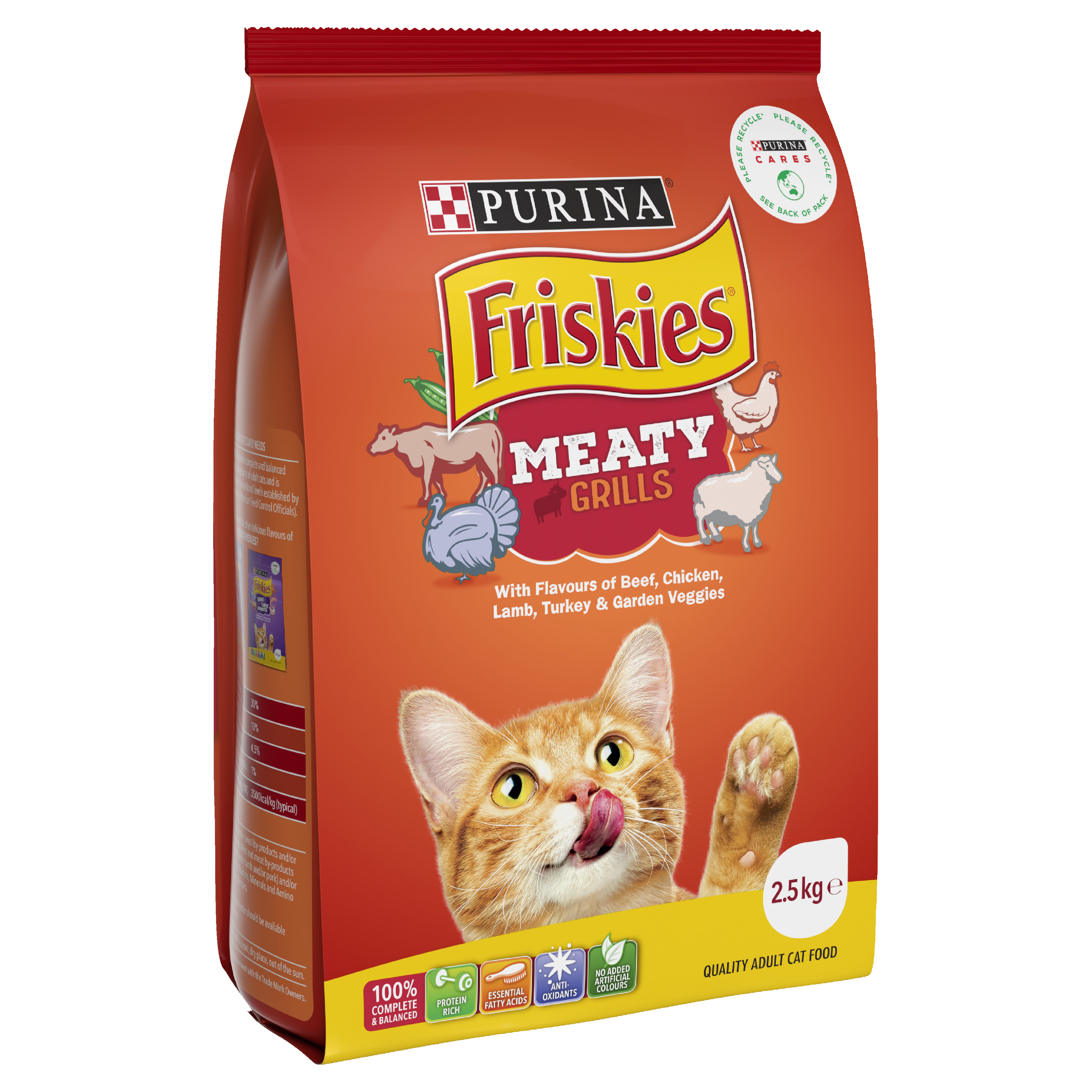 Every bowl of Friskies Meaty Grills is a sensory experience, boasting enticing aromas, appealing shapes, and mouth-watering flavours that cats simply can't resist. Beyond the tantalizing taste, this dry cat food is 100% complete and balanced, ensuring your cat receives all the essential nutrients needed for a vibrant and fulfilling life.