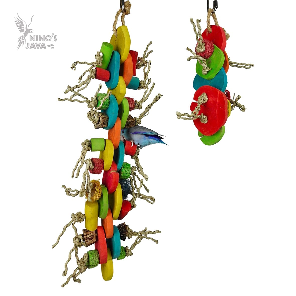 Note: Please remember to supervise your pet while using this product, as it may develop small pieces over time. Ninos Java Toys are subject to occasional updates, ensuring the best possible experience for your avian friend. Toys are a random assortment of colours.